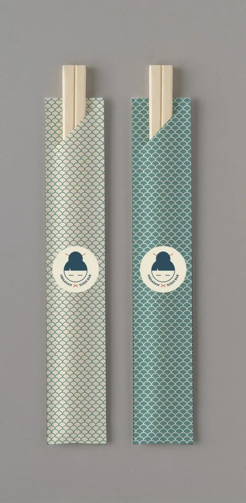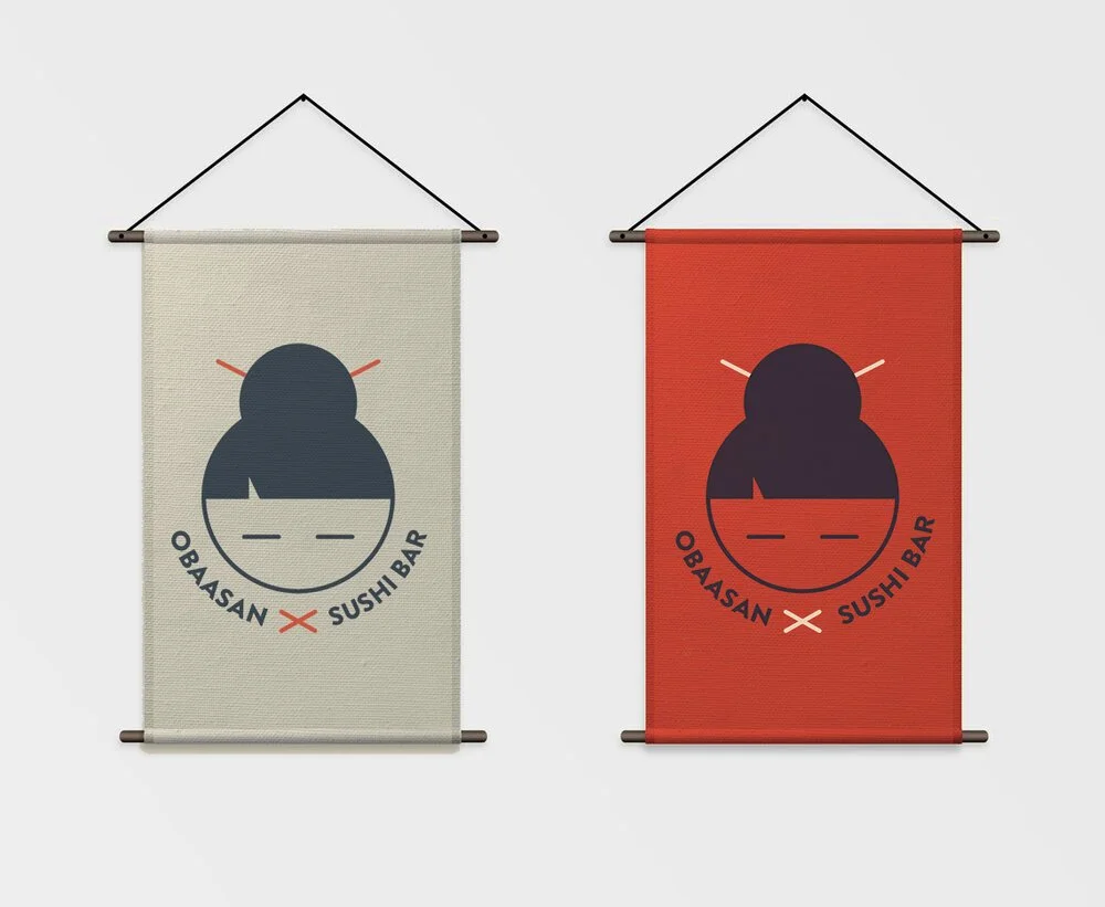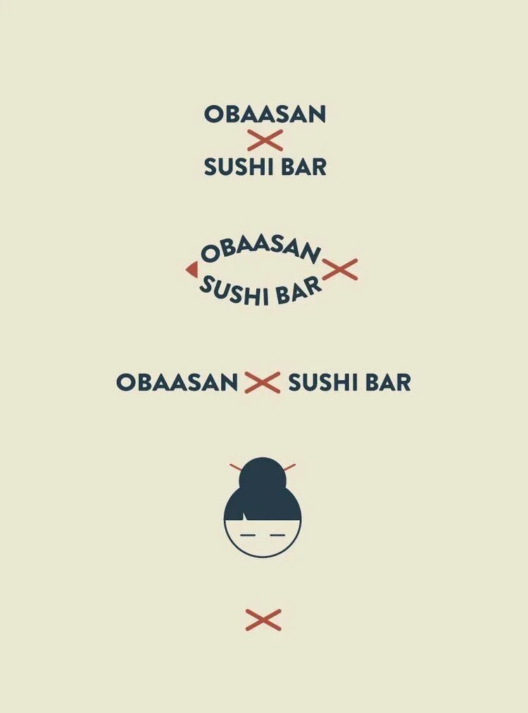 The logo represents the japanese word ‘obaasan’, which means grandmother. Grandomther as a symbol of food made with love. Food that we can always trust and will never disappoint us, which is Obaasan Sushi Bar’s utlimate goal. The red sticks used for the hair bun are also used as a methaphor for chopsticks. The simple shapes and the geometric typography chosen, give a modern and friendly look, which emphasizes the young and innovative spirit of the brand.